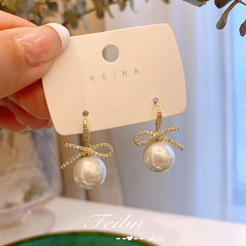 Korean Pearl Earrings Woman 925 Pure Silver Butterfly Knot Zircon Pendant Earshot Female small crowdsourced design Sensation Temperament Earrings