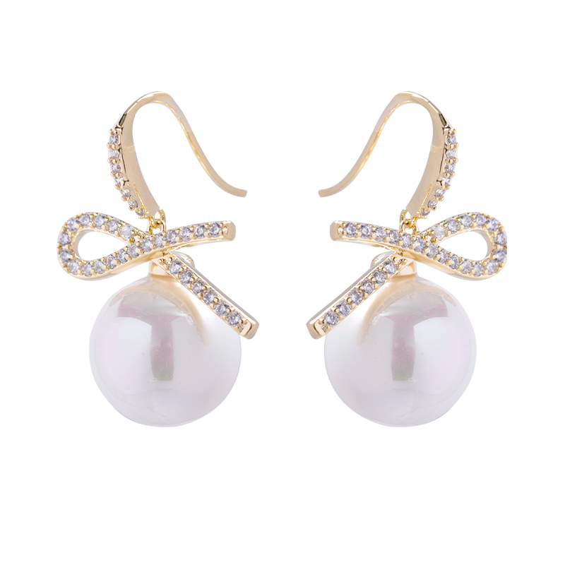 Silver Bow Tie Pearl Earrings Gold Butterfly Knot Pearl Earrings