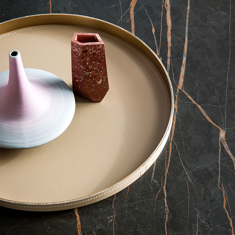 Wood Lati Furniture-style extremely minimalist rock plate Tea Table Living Room Small Family Nordic minimalist light extravagant saddle leather tea table
