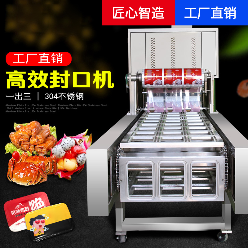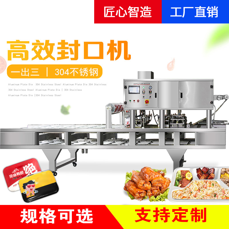 Automatic student fast food box sealing machine assembly line takeaway seafood braised meat large amount of packaging stainless steel one out of three