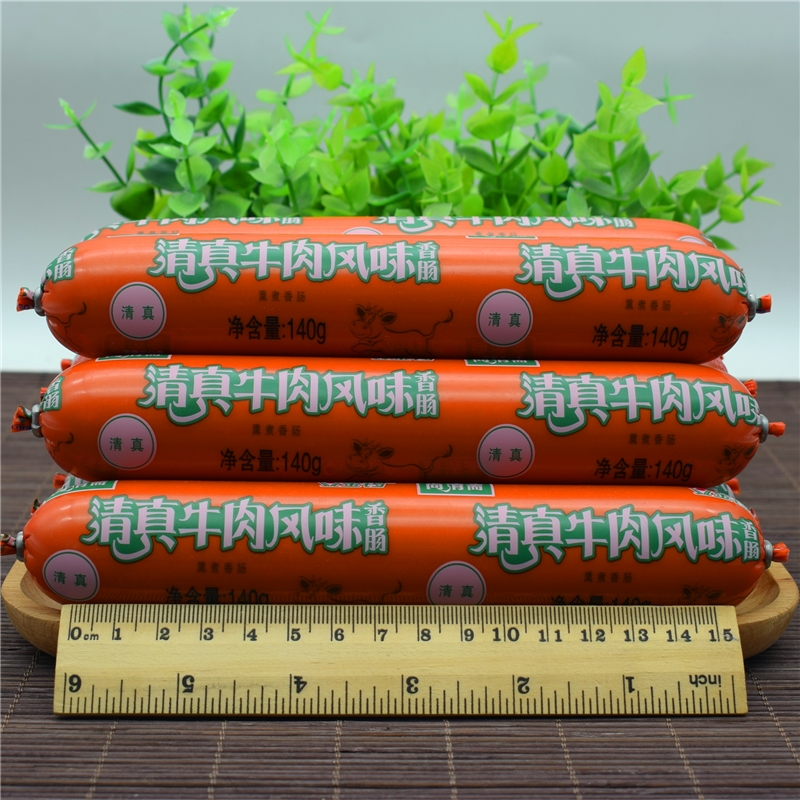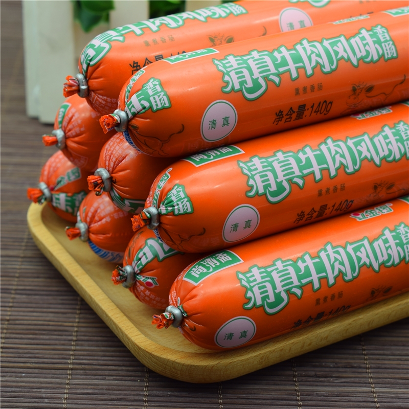 Golden gong Qingshan Saihalal Genuine Chicken Sausage Beef Intestines Coarse 140g18 Whole Box Starch Sausage Ready-to-eat Barbecue Fried