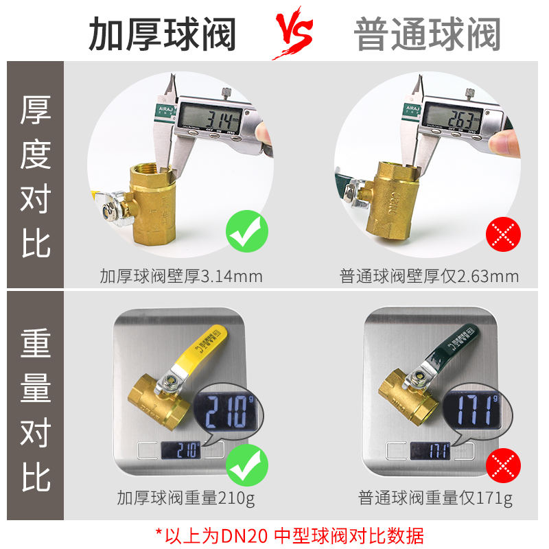 Full copper thickened ball valve 4 points 6 points 1 inch 2 inch tap water valve Water pipe switch DN20 25 32 40 50 50 Taobao