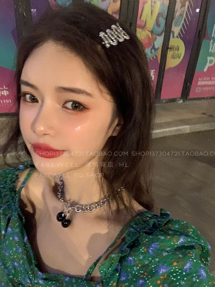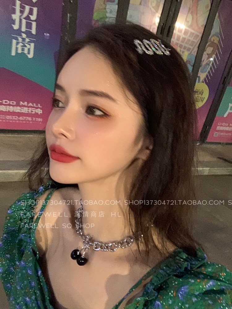Super sweet cool ~ Harajuku hot girl personality black cherry necklace ins cold wind dark female choker clavicle chain