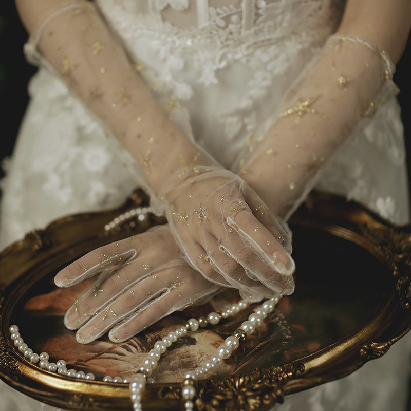 Bride Married Wedding Gloves Woman Champagne Limit Five Points to host the ceremony 2020 new long mode