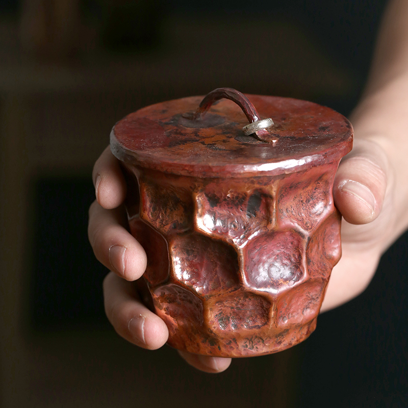 Burn Ribbon Cover Cigarette Ash Tray Handmade Red Copper Tobacco Ashtray Retro Red Copper Cigarette Ash Tray