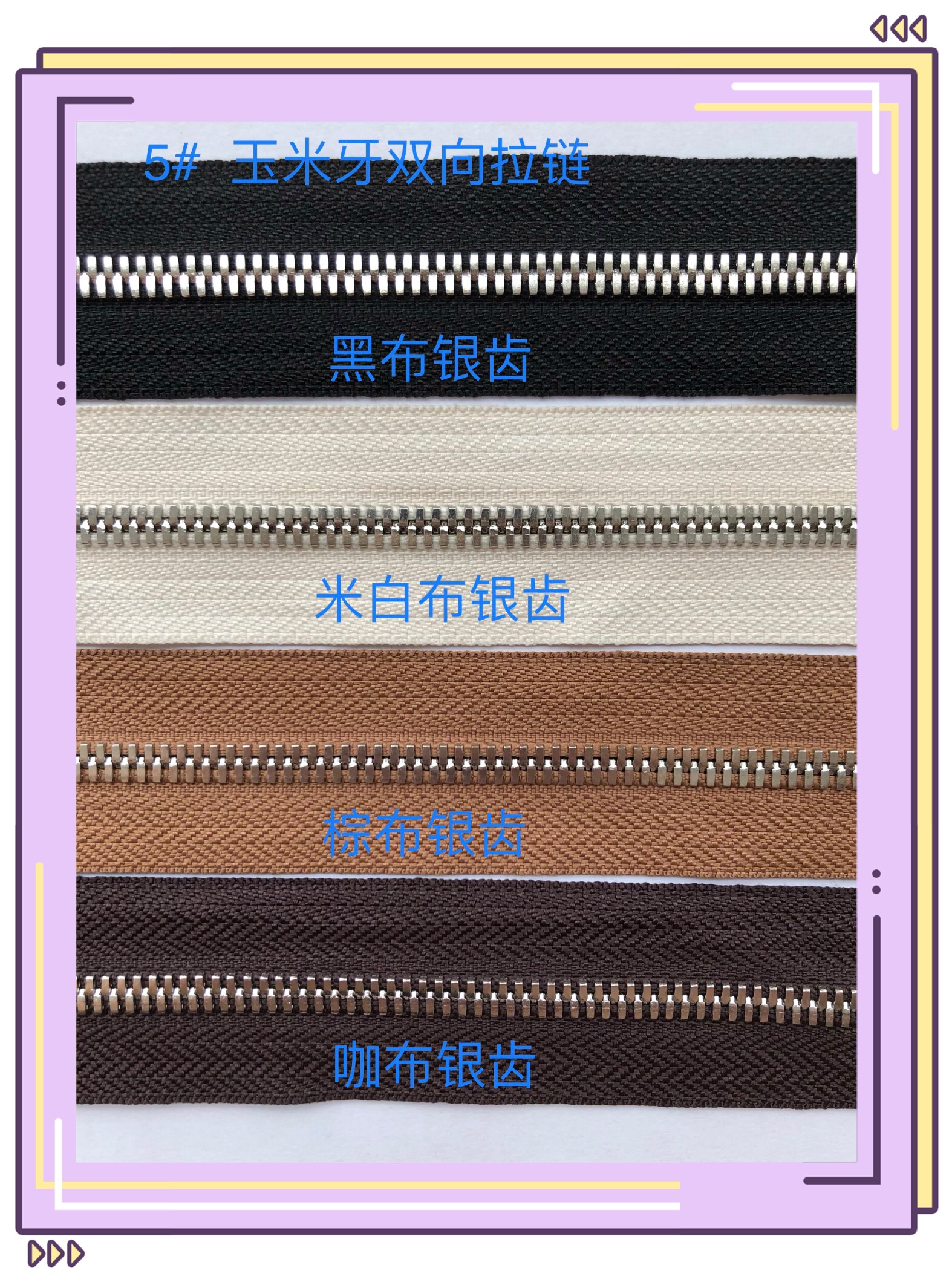 5#Black cloth (gold tooth)5#Beige cloth (gold tooth) 5#Red cloth(Gold tooth) 5#Brown cloth(Gold tooth) 5#Coffee cloth(Gold tooth) 5#Black cloth (silver tooth)5#Beige cloth (silver tooth) 5#