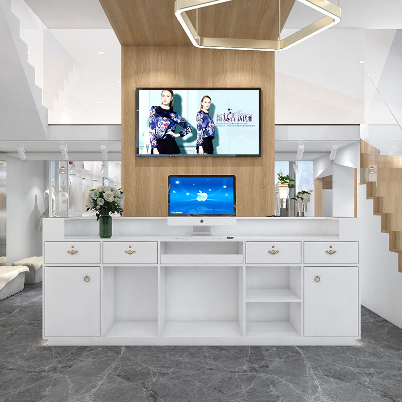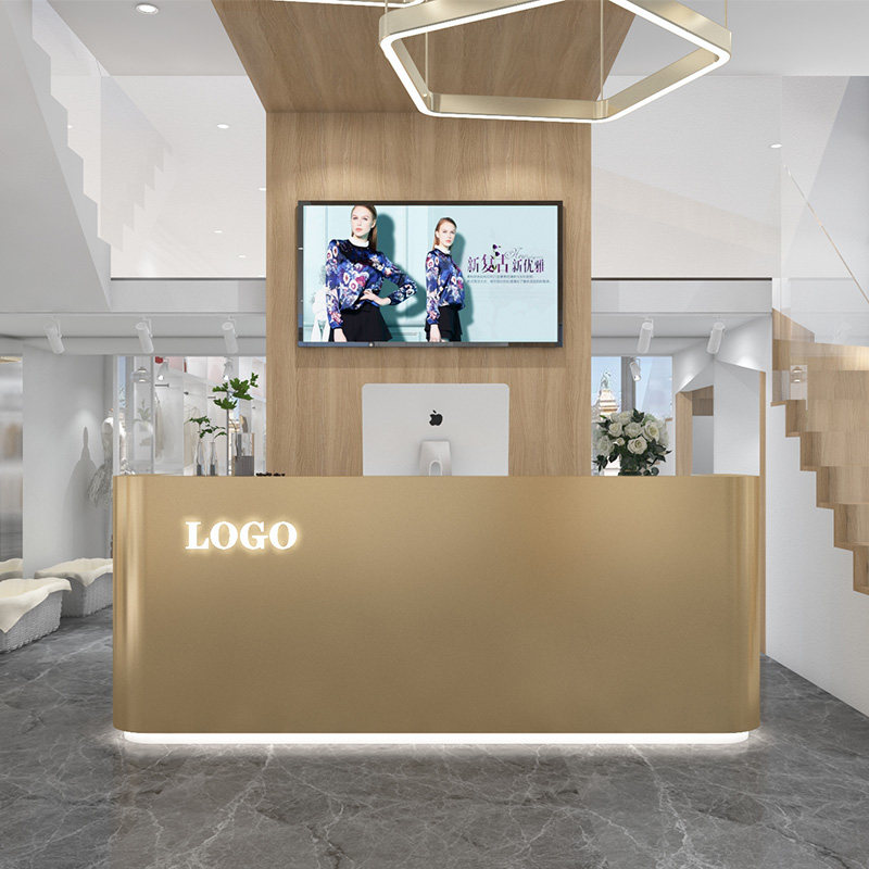 Curved stainless steel cash register counter Simple modern light luxury clothing store small bar company reception counter