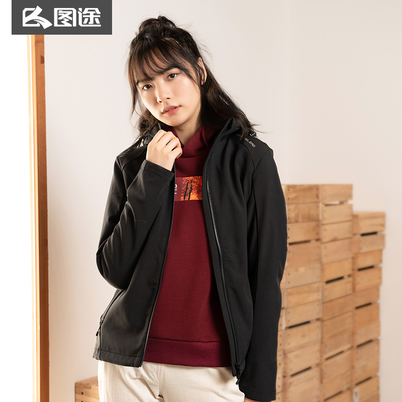 Tutu outdoor women's soft shell 2020 autumn and winter new elastic top windproof hooded jacket casual sportswear