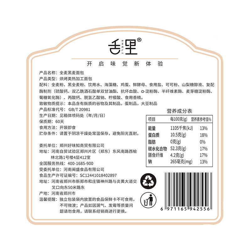 Tongue Rye whole wheat meal bread 1kg boxes 0 fat coarse grain lazy food toast breakfast snack snacks