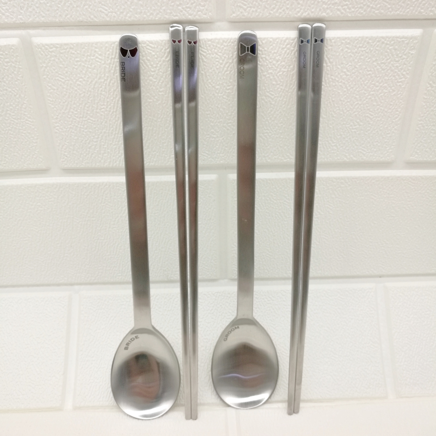 The bride and groom Korea imported 18-10 stainless steel solid flat chopsticks spoon tableware traditional Korean style