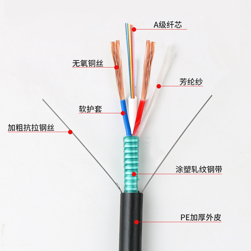4-core optical cable composite power fiber quadcore 1 square belt 2X1 0 pure copper power cord single-mode photoelectric cladding cable