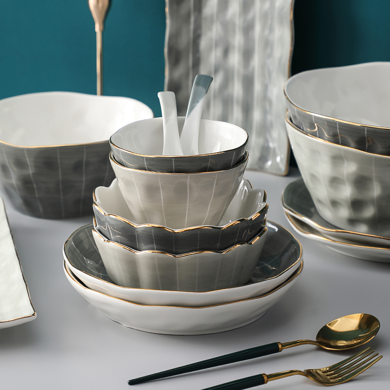 Light Extravagant Phnom Penh Dish Suit Home Creative Ceramic Soup Bowl Eating Bowl dishes Dish Personality Composition Nordic Cutlery-Taobao