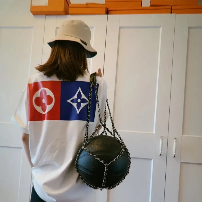 STYLE-CLUB] Xiaoxiang same style Jay Chou Demonstration Basketball Netball Bag Ball Bag Metal Patch Leather Tote Bag