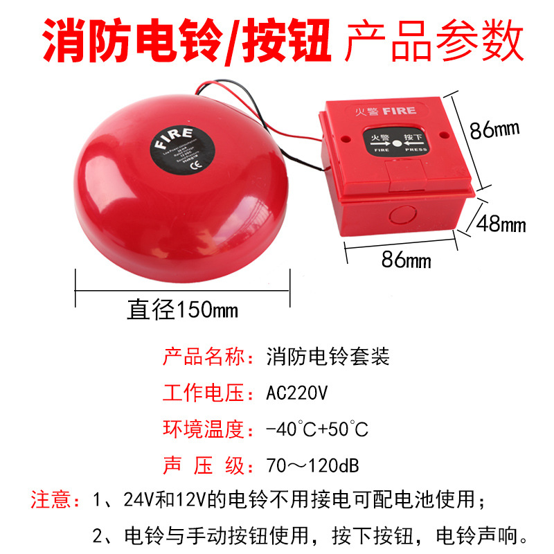 Fire alarm 220V24V fire alarm bell 4 inch hotel inspection alarm emergency button fire alarm