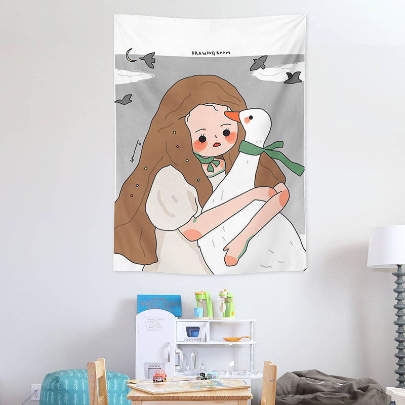 ins Wind Nordic hipster girl heart background cloth room bedside decoration hanging cloth net red tapestry