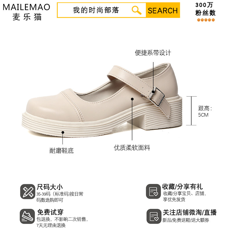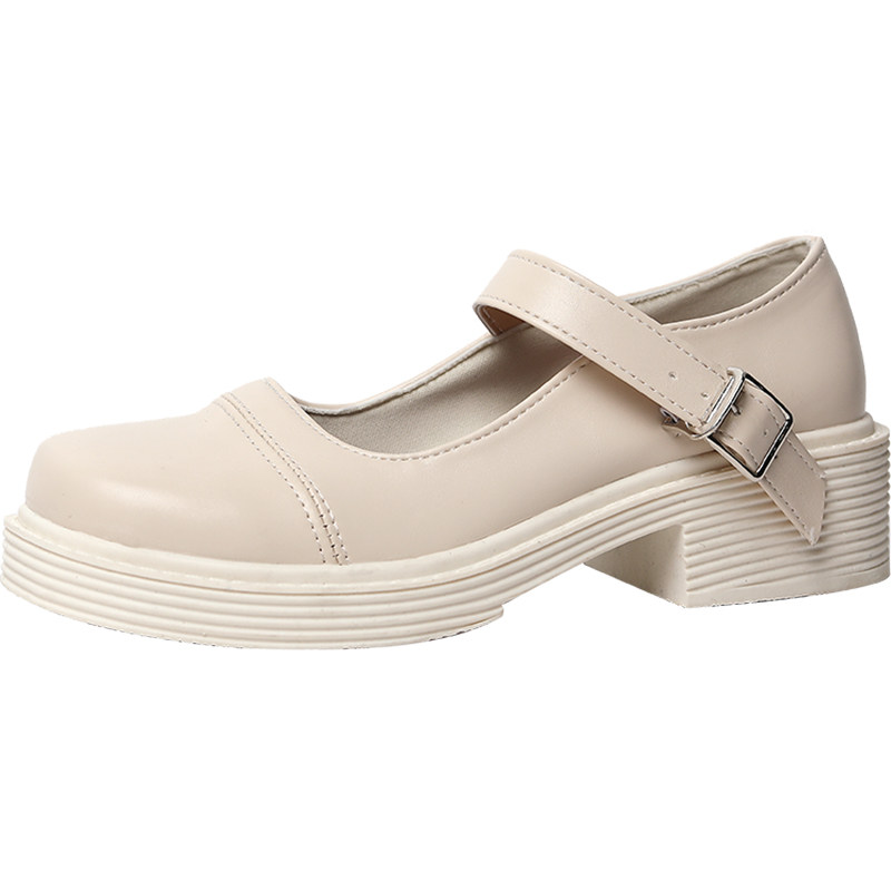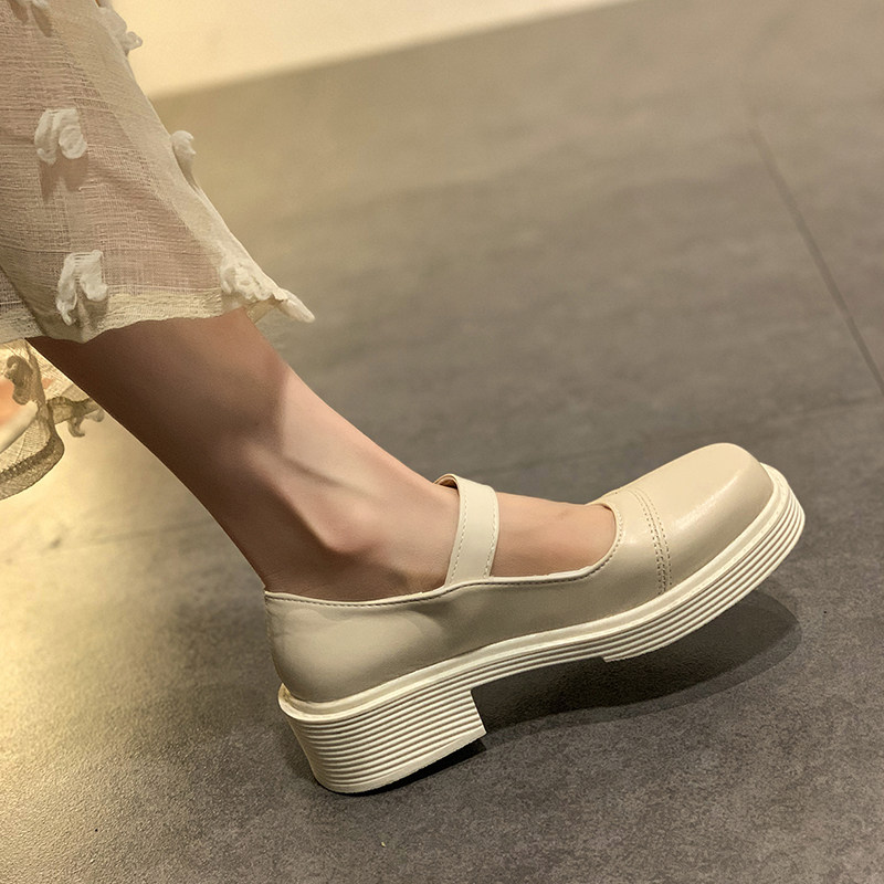 White small leather shoes women's British style spring 2021 all-match retro shoes women's literary thick heel Mary Jane shoes