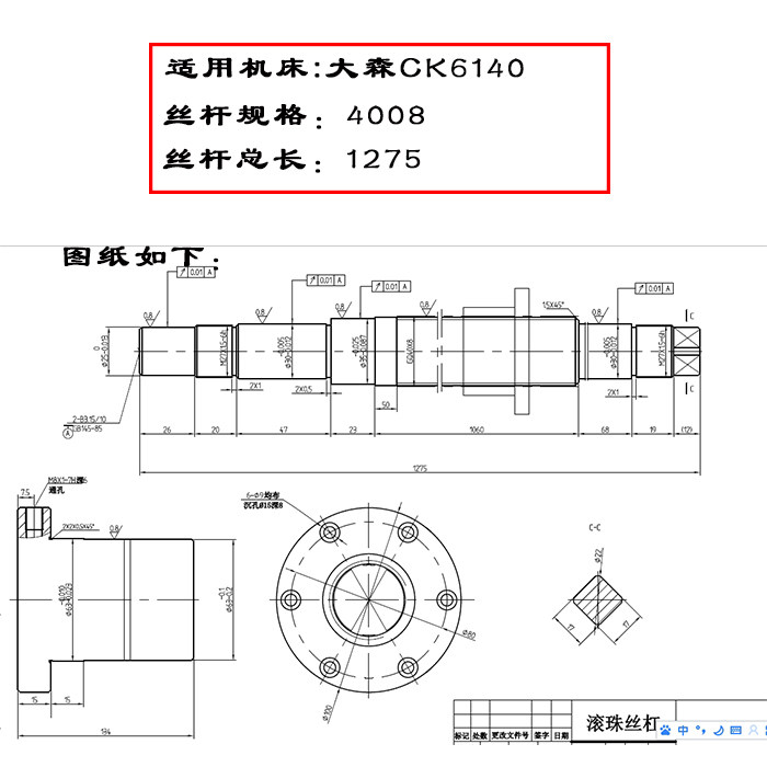 Wenling Dasen Machine Tool Wire Rod Numerical Control ck6140 ck6140 ck6150 ck0625 ck0625 Lathe Xz Shaft Ball Bearing Screw 1275