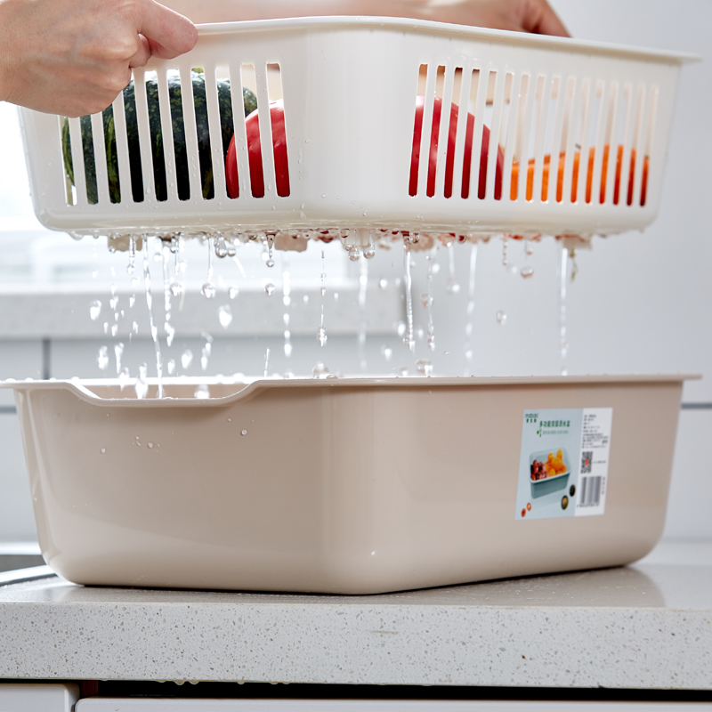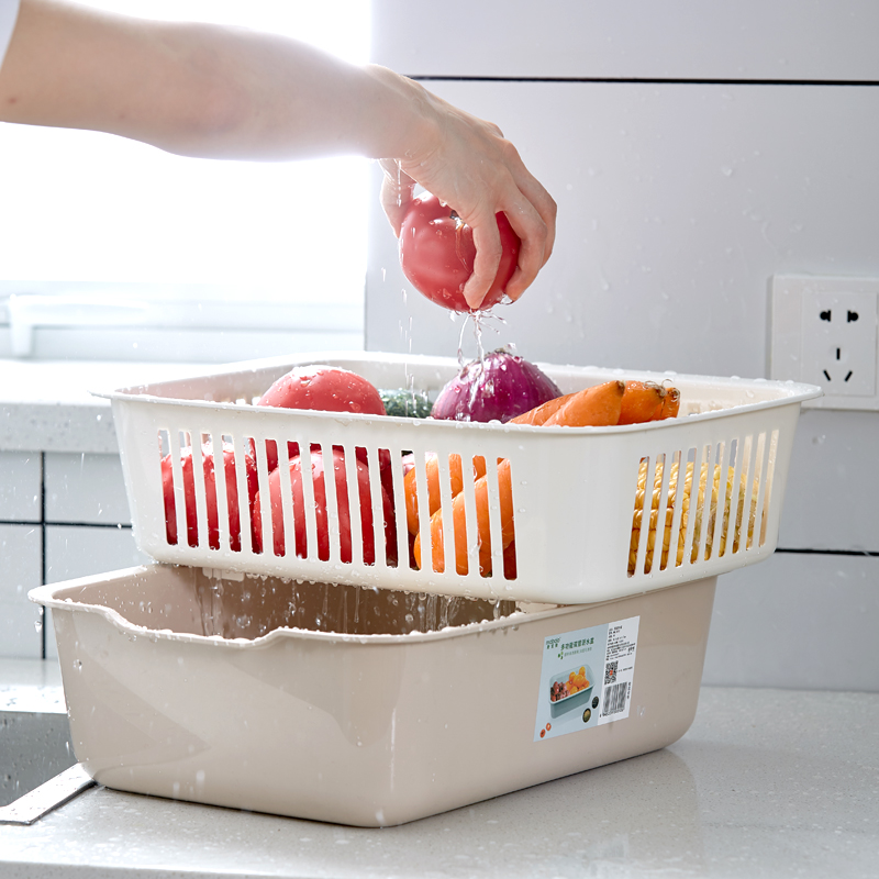 Double-layer square washing basket drainage basket plastic home multifunctional kitchen sink drain rack tao rice washing basin
