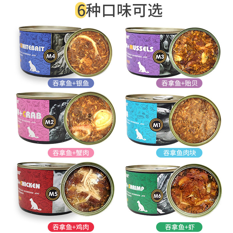 Canned cat 170g single can snack wet food package all cat universal tuna fish chicken shrimp puppet silver gradient Thailand