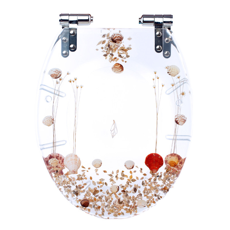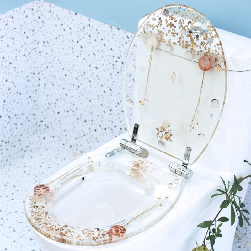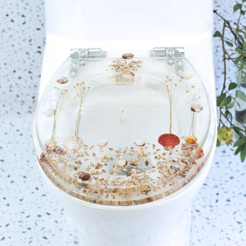 Transparent resin toilet cover universal toilet cover thickened slow-drop buffer mute color solid toilet ring really dry flower