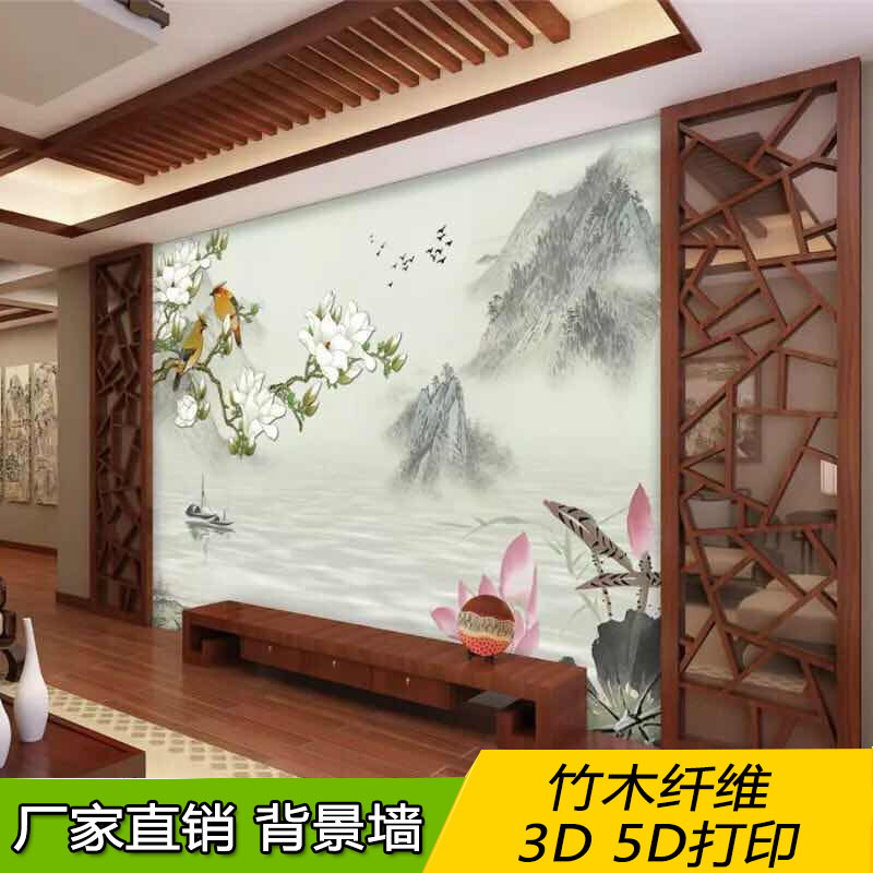 100 embroidered integrated wall panel 3D painted TV background wall 5D stereo painting bamboo and wood fiber quick fitting wall decoration full house customization