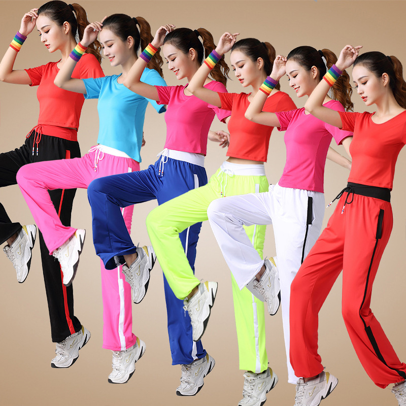 Square dance costume women's summer dance short sleeve two-piece suit sports fitness fast dry pants dance practice clothes