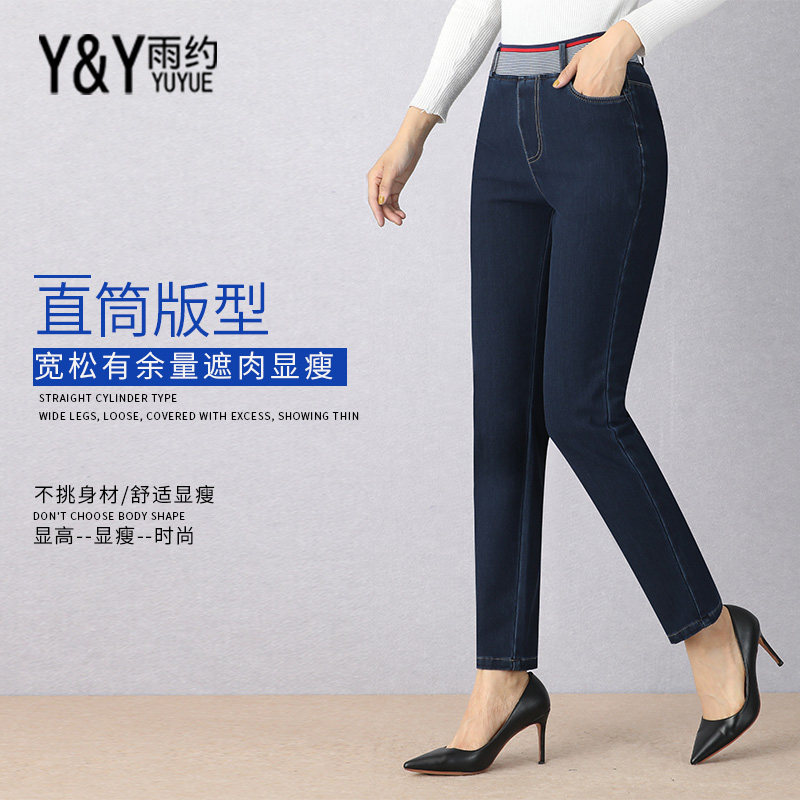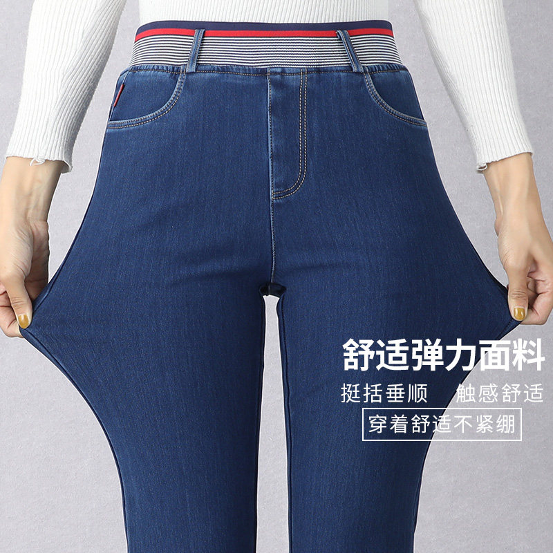 Middle-aged mother jeans women's autumn and winter velvet thickened pants wear elastic high waist loose straight pants