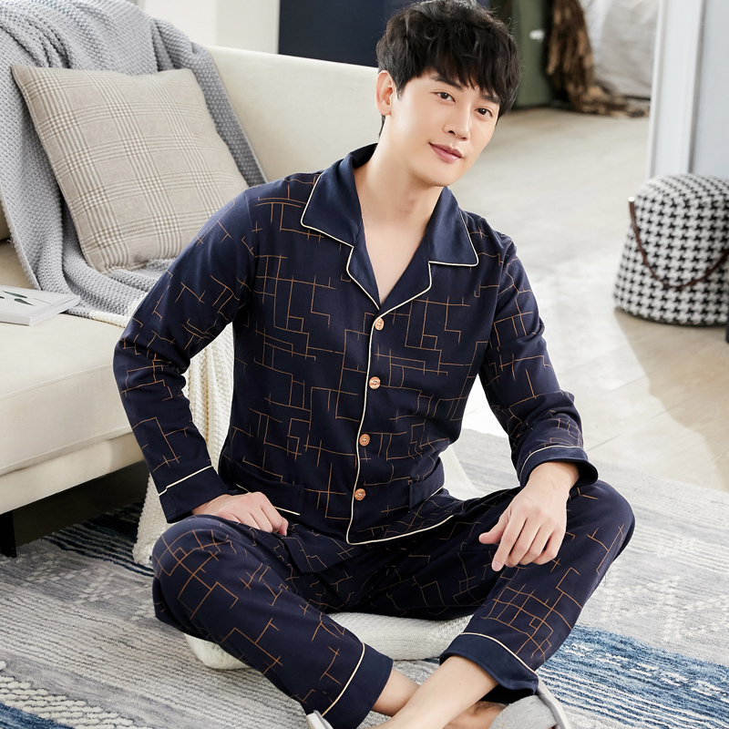 Men's Sleepwear Spring Autumn Season Long Sleeves Pure Cotton 2022 New Autumn Winter Money Fall Winter Great Size Home Suit Suit