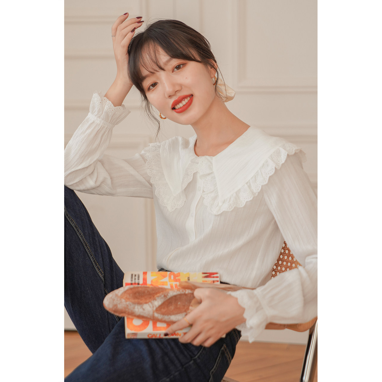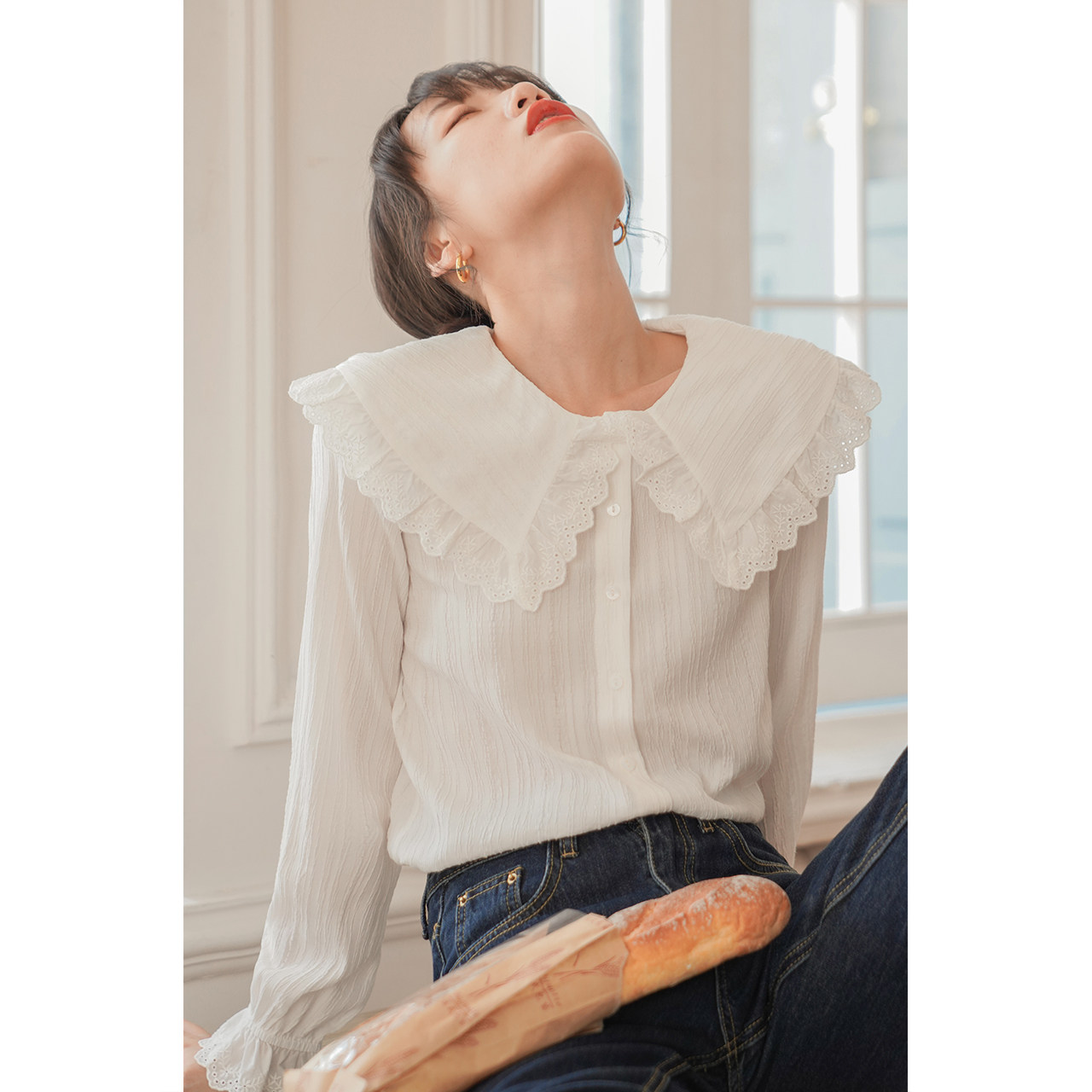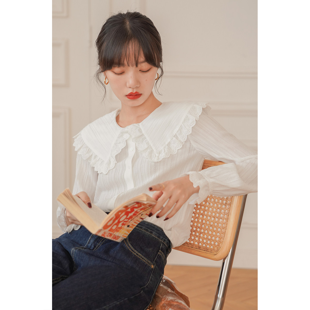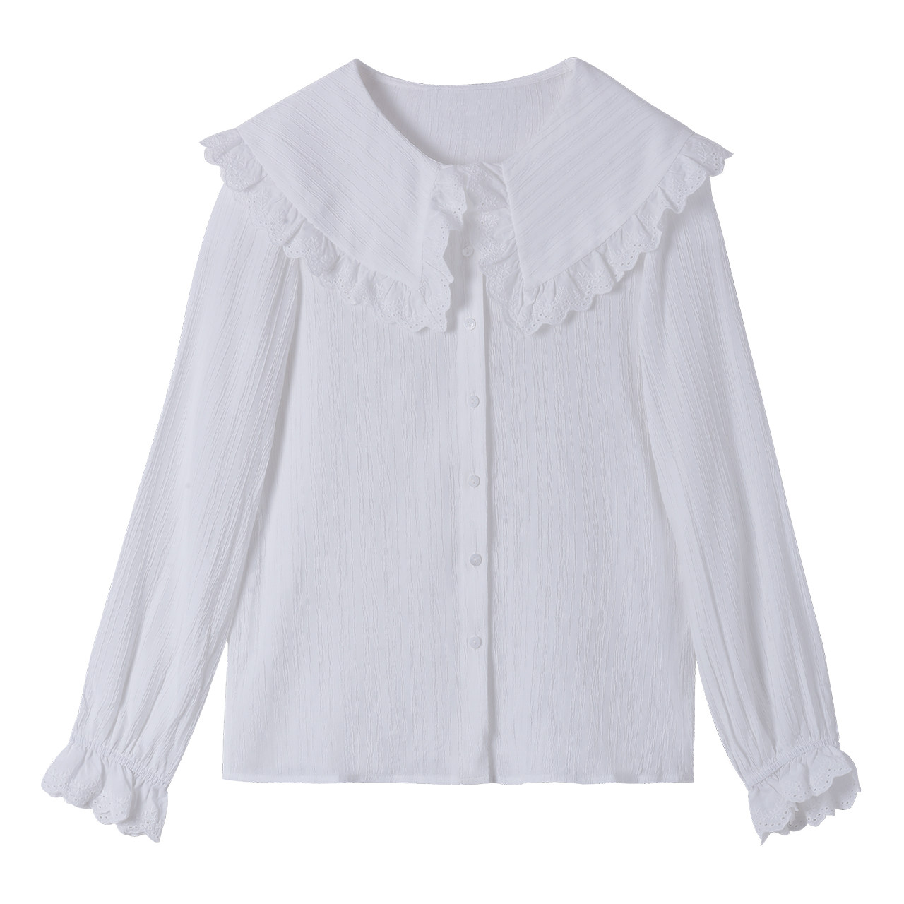 Fassilu White Doll Collar Shirt Woman Design Sensation Small Crowd 2022 Autumn Dress New Style Retro Long Sleeve Blouse
