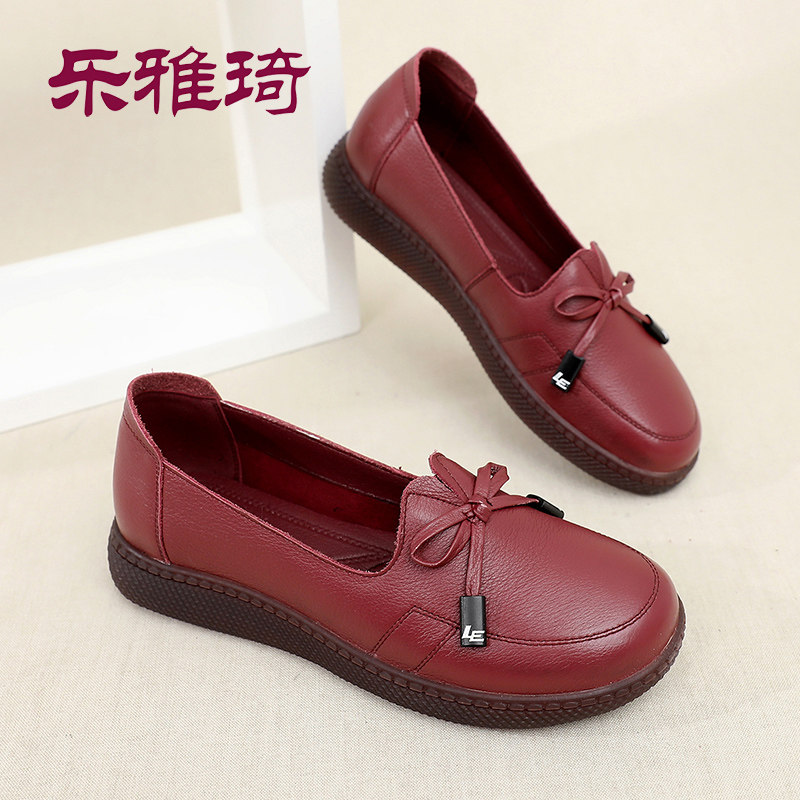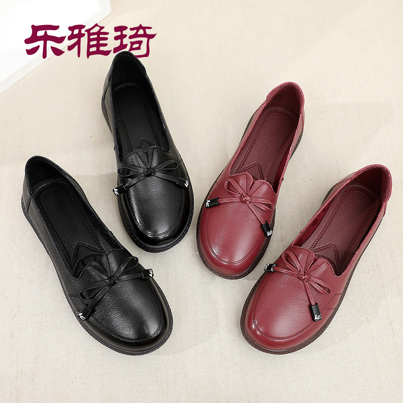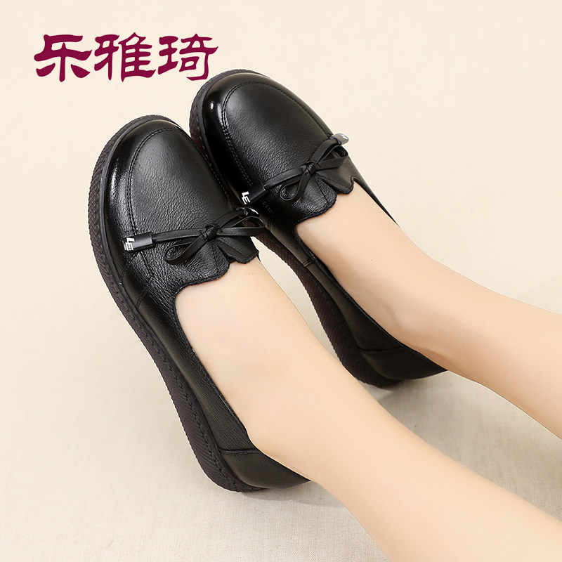Autumn leather mother shoes soft sole comfortable single shoes middle-aged and elderly women's shoes grandma non-slip large size middle-aged leather shoes