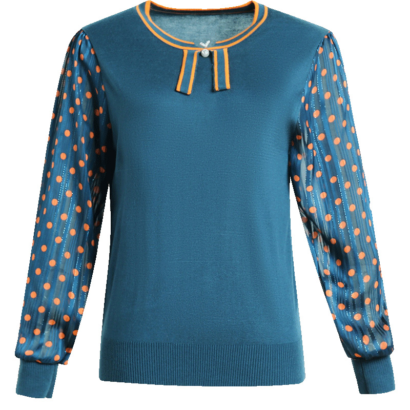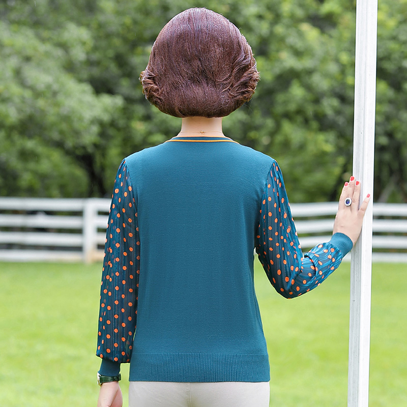 Middle-aged spring and autumn women's T-shirt fashion mother long-sleeved base small shirt Middle-aged spring thin section two four august top