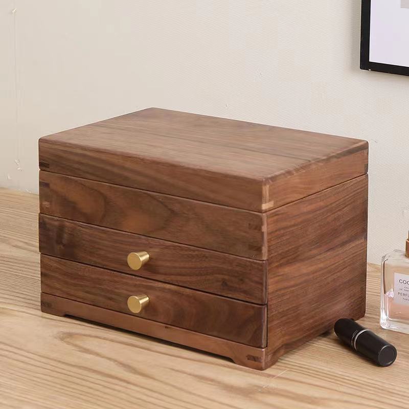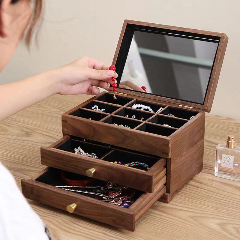 North American black walnut three layers with mirror Whole wooden top North American black walnut Dragon and phoenix embossed jewelry box New Zealand pine five layers one key lock with mirror paulownia six layers walnut color with mirror carved paulownia six layers Hu