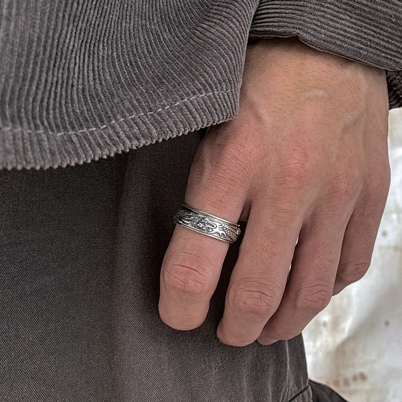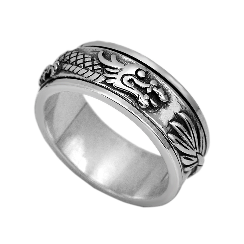 S925 Pure Silver Men's Rings Turn Overbearing Tide Man Personality Single God Dragon Rotating Tayin Tayin Retro Ring Lettering