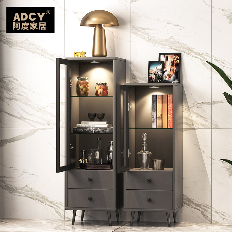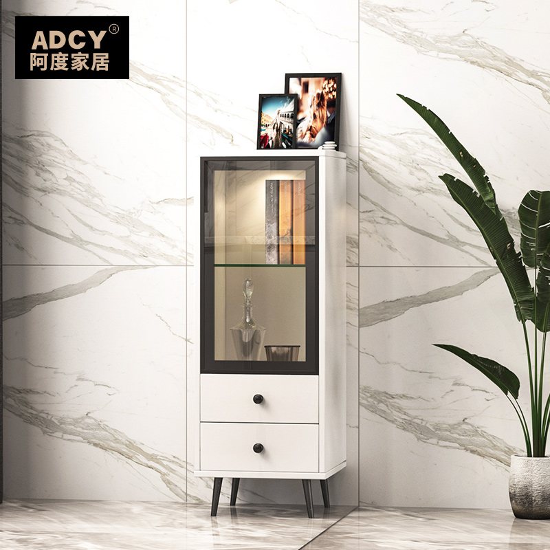Light luxury small wine cabinet against the wall integrated modern minimalist living room household small dining cabinet narrow vertical cabinet small apartment glass cabinet