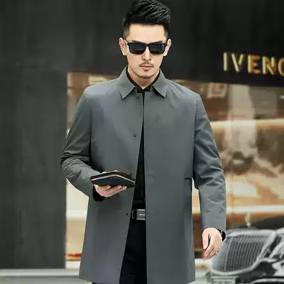 Arctic velvet men's Spring and Autumn New coat medium and long version middle-aged business casual lapel dad spring thin windbreaker
