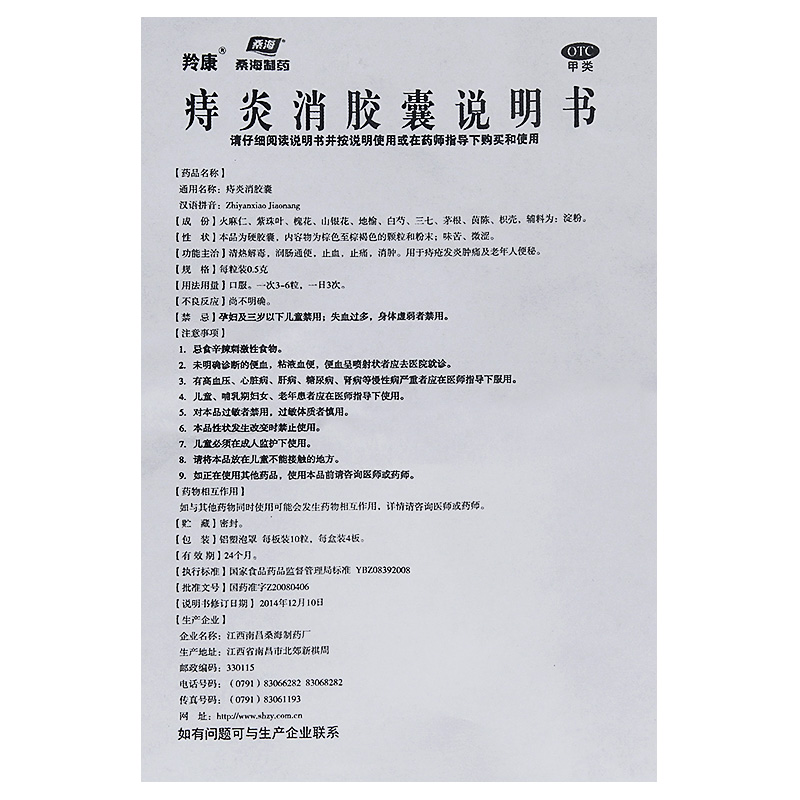 Sanghai Zhiyanxiao Capsules 0 5g*40 Capsules Clearing Heat, Detoxifying, Runchang Tong, Stopping Bleeding, Pain, Swelling, Hemorrhoids Inflammation