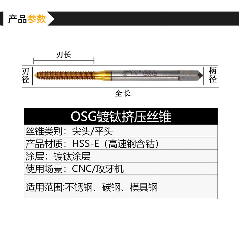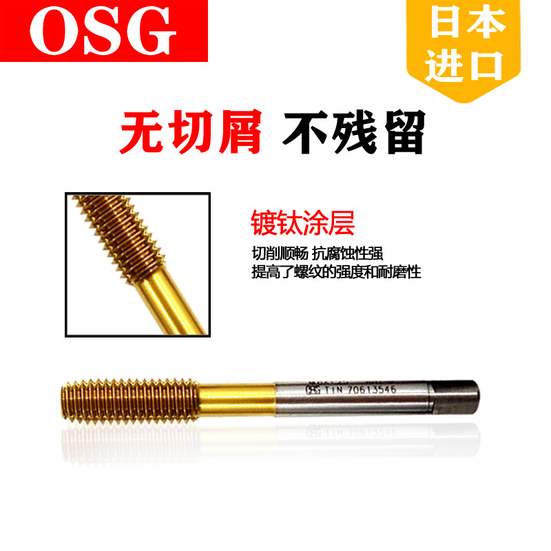 OSG squeeze screw tapping machine with titanium plated screw tap without chip screw tapping m2m3m4m5m6 stainless steel with cobalt crowding screw tapping