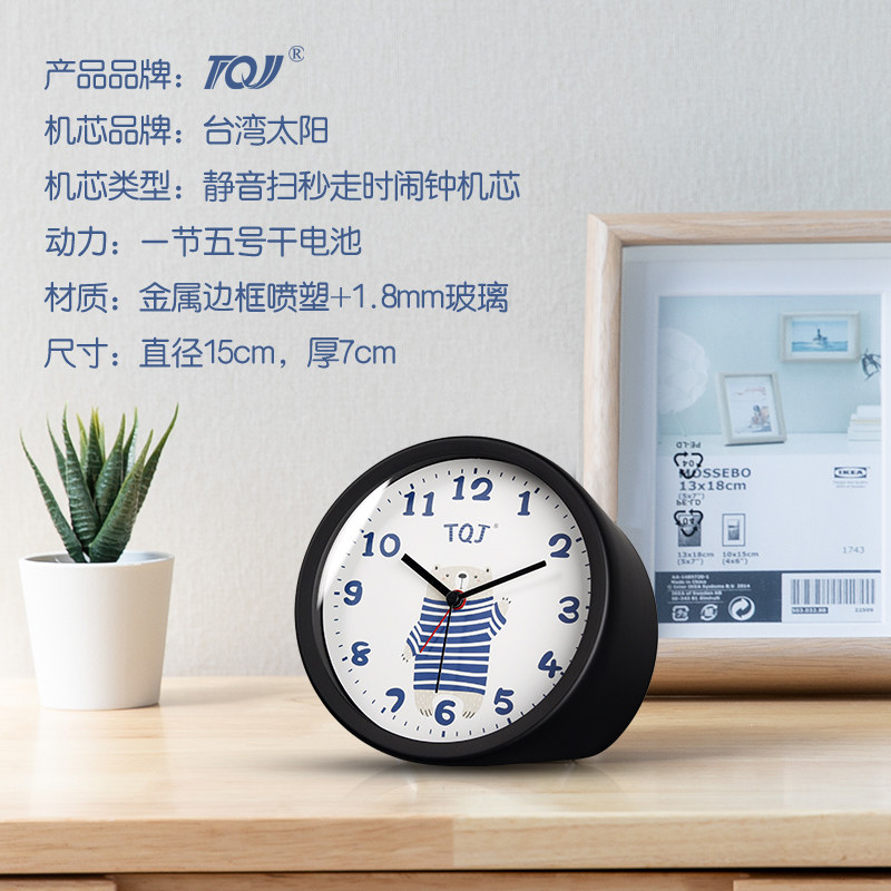 TQJ Alarm Clock Cartoon Children's Bedside Clock Students Quiet Table Clock Fashion Table Clock Table Clock
