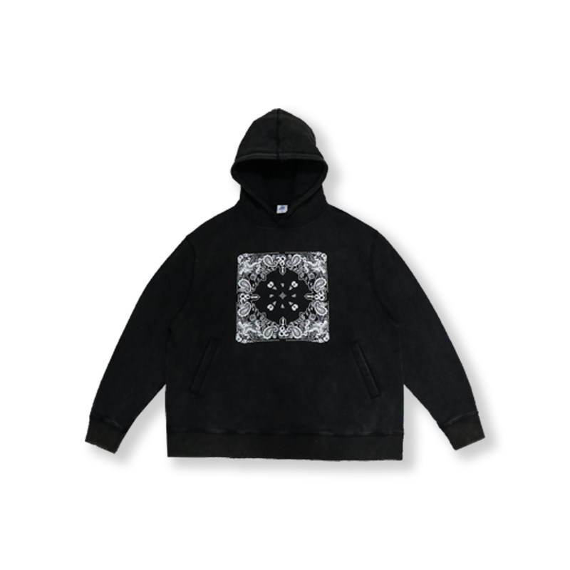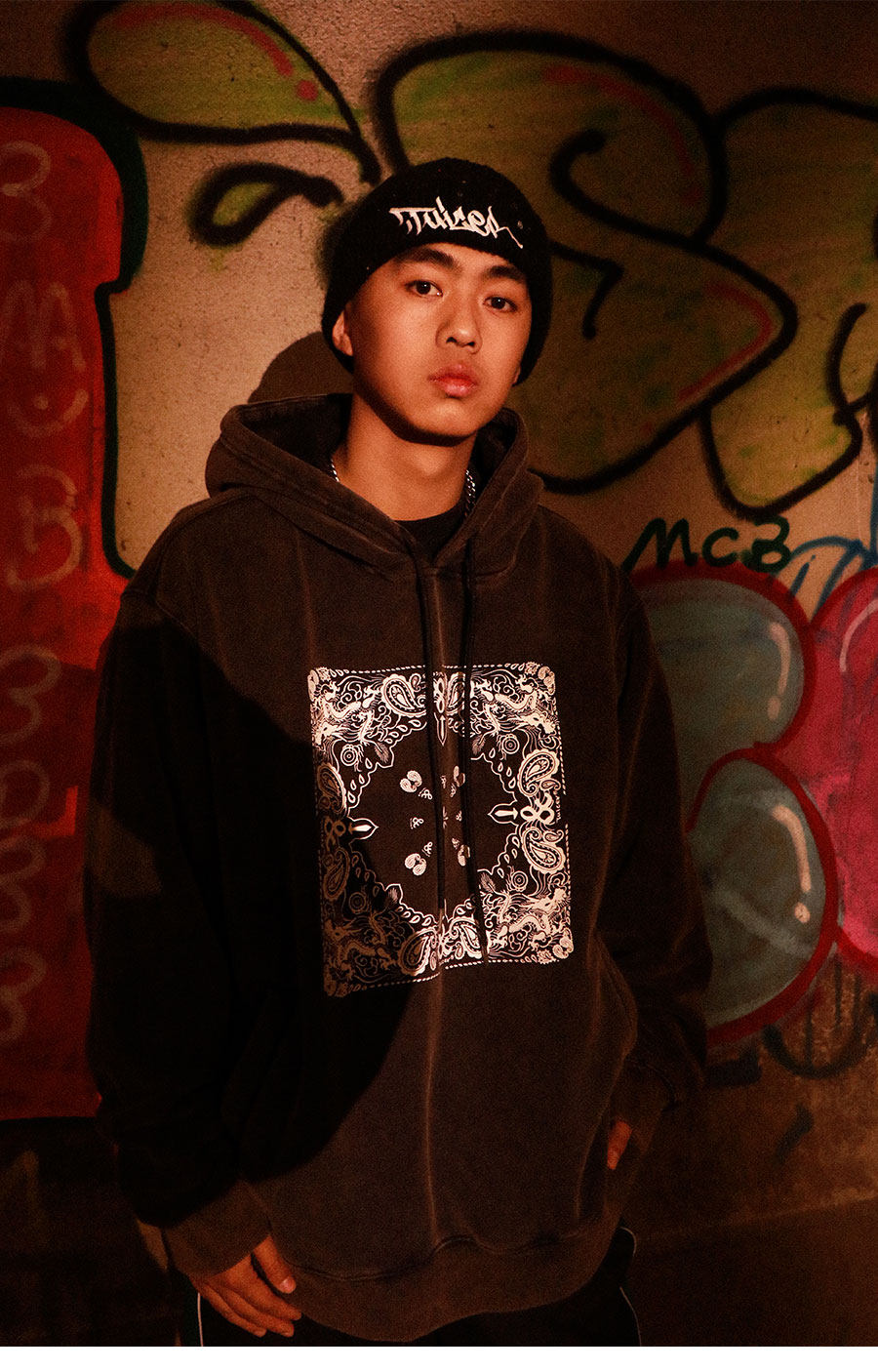 tuicer spring and summer new national tide double dragon play beads cashew flower pure cotton printing loose washed old bag hoodie