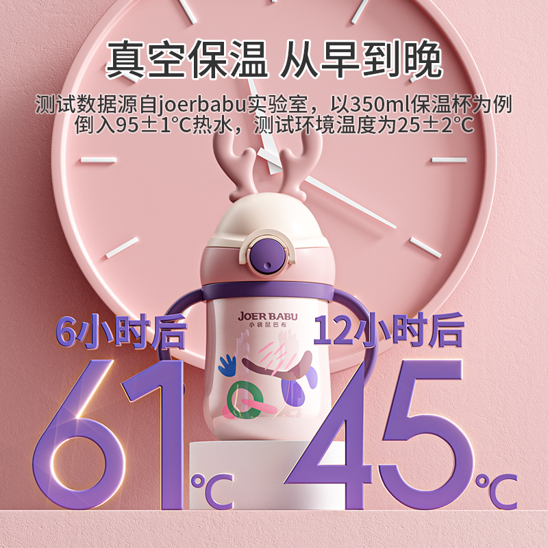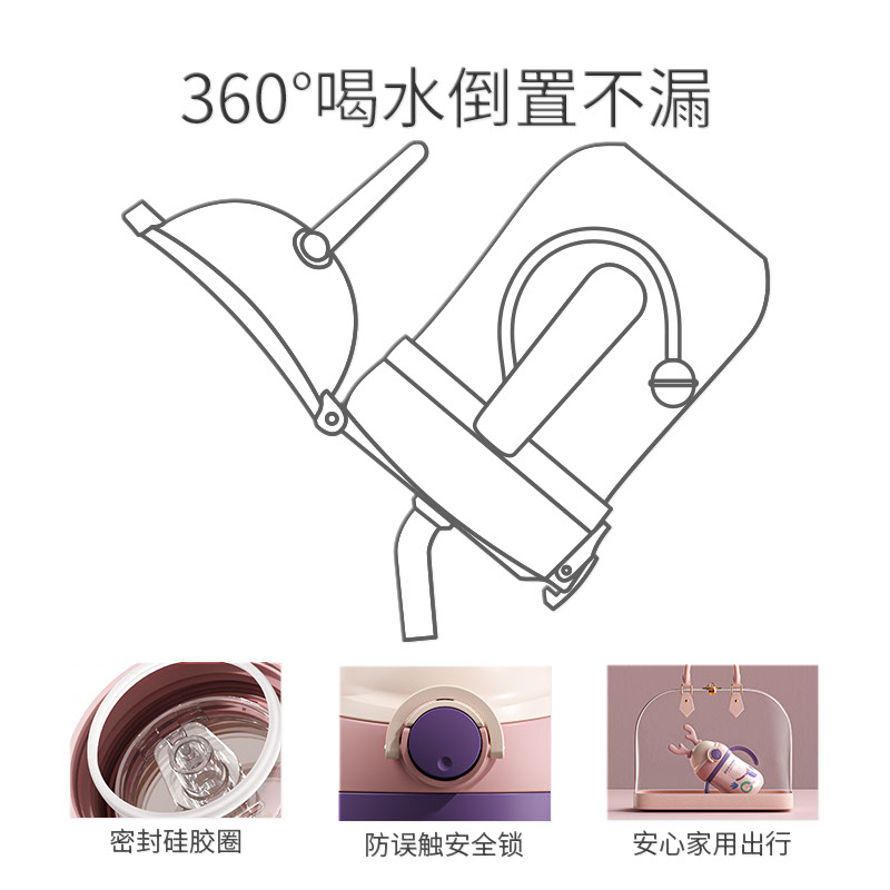 Children's thermos cup with straw baby dual-purpose duck mouth learning cup baby water cup 1 year old 2 out to carry drinking kettle