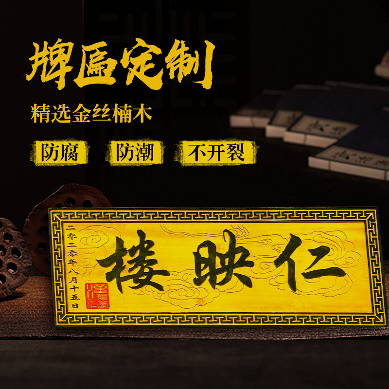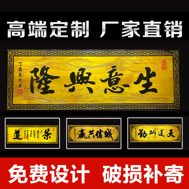 Golden nanmu solid wood plaque opening gift plaque rated as hanging plaque mahogany ancestral hall calligraphy shop lettering production