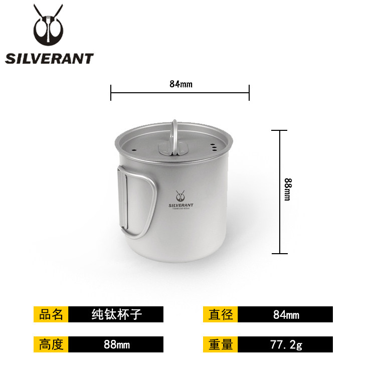 Silver Ant single-layer pure titanium water cup folding coffee cup outdoor boiling water cup camping titanium cup titanium metal mug - Taobao