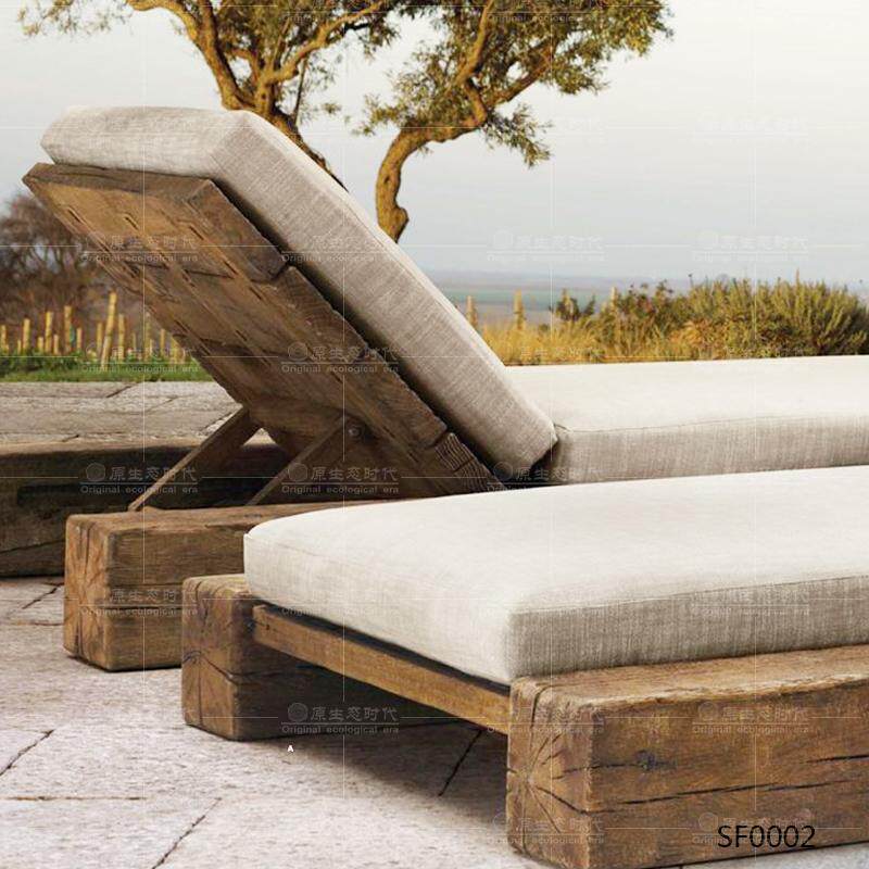 Homestay style balcony sofa bed retro old furniture log sofa bed nostalgic solid wood style back sofa chair - Taobao