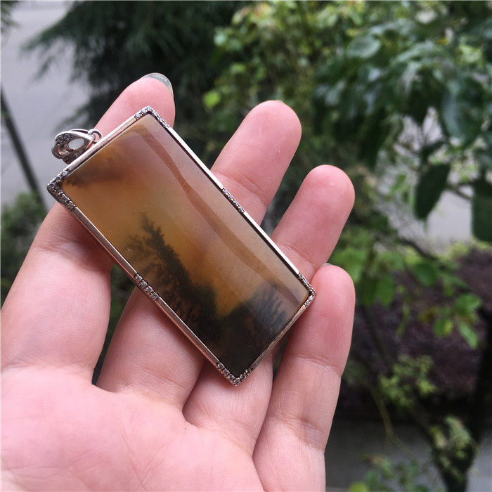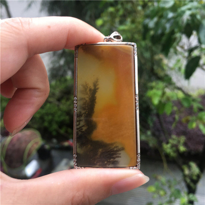 Yunnan natural jade Huanglongyu A cargo water plant flower pendant pendant S925 silver inlaid men's and women's neck ornaments jade pendant