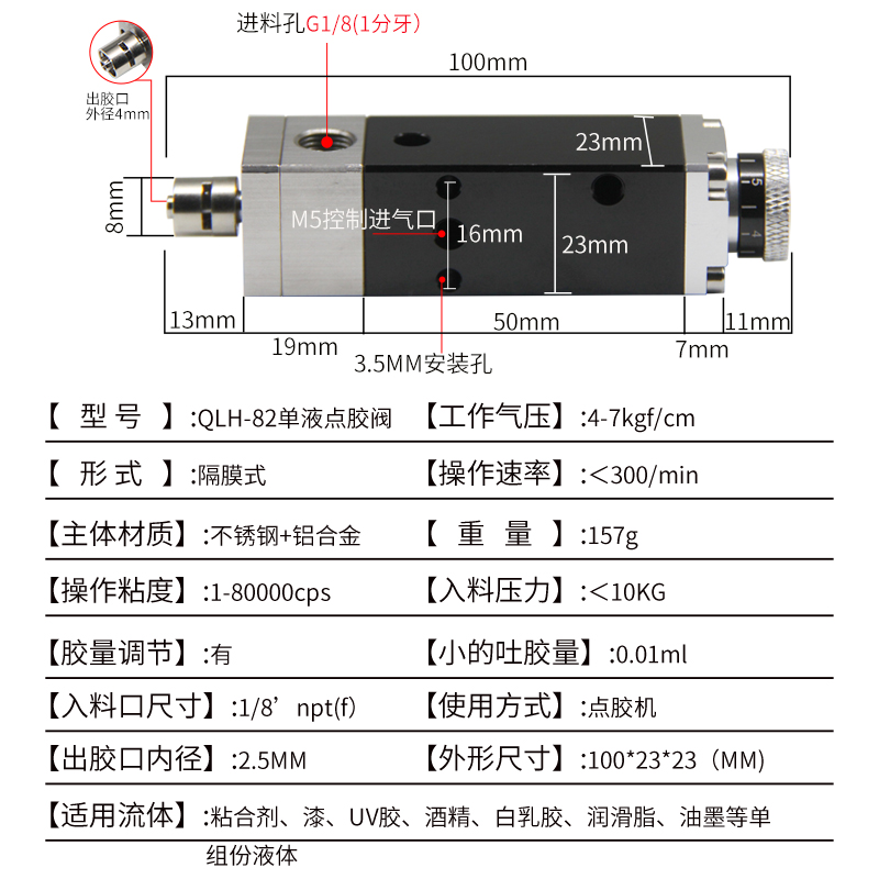 QLH-82 precision dispensing valve Diaphragm type single liquid valve Single-component glue dispensing machine Diaphragm valve pneumatic belt fine-tuning