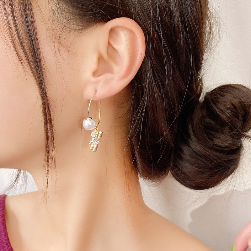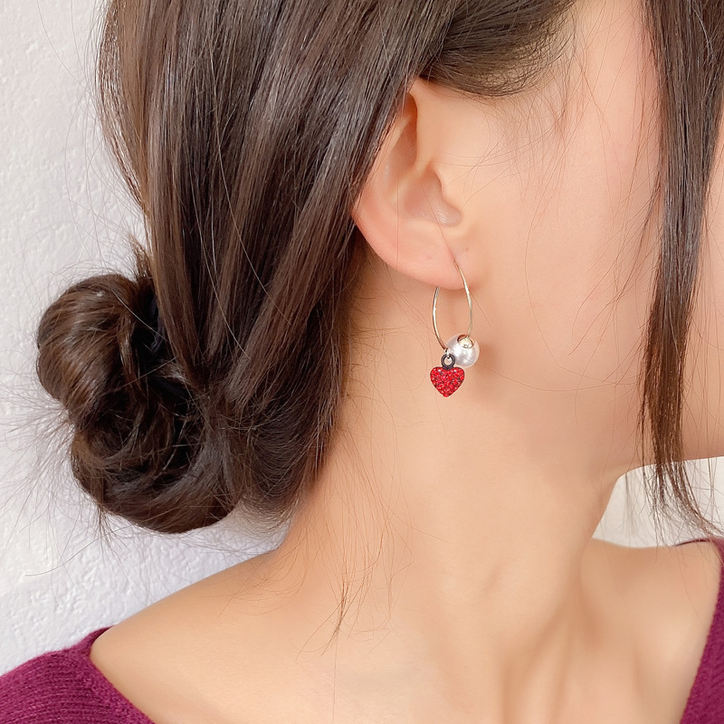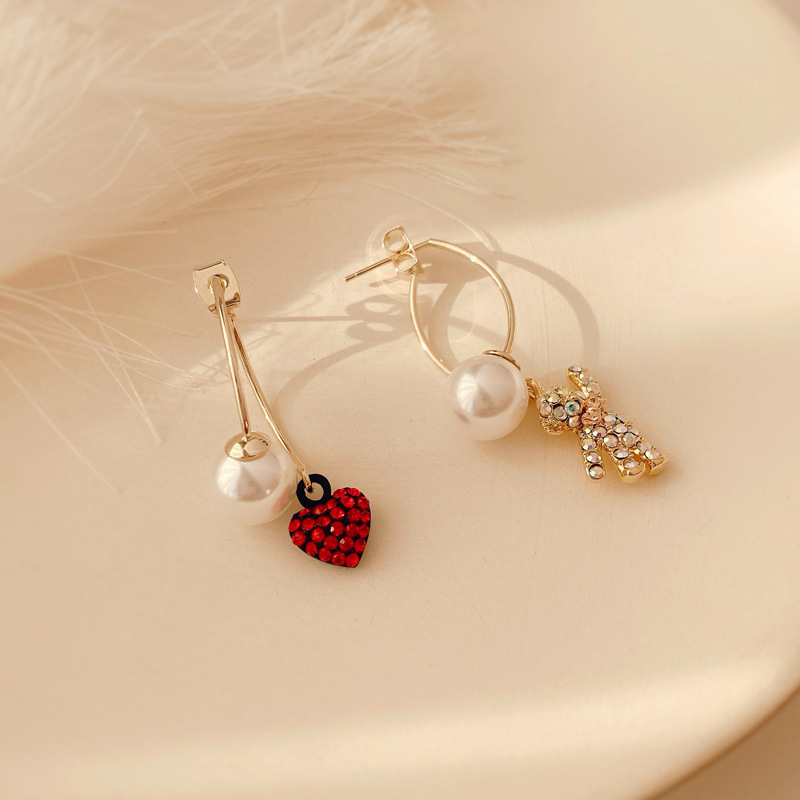925 silver needle color retention love bear ear needle new autumn and winter red love earrings earrings niche design earrings
