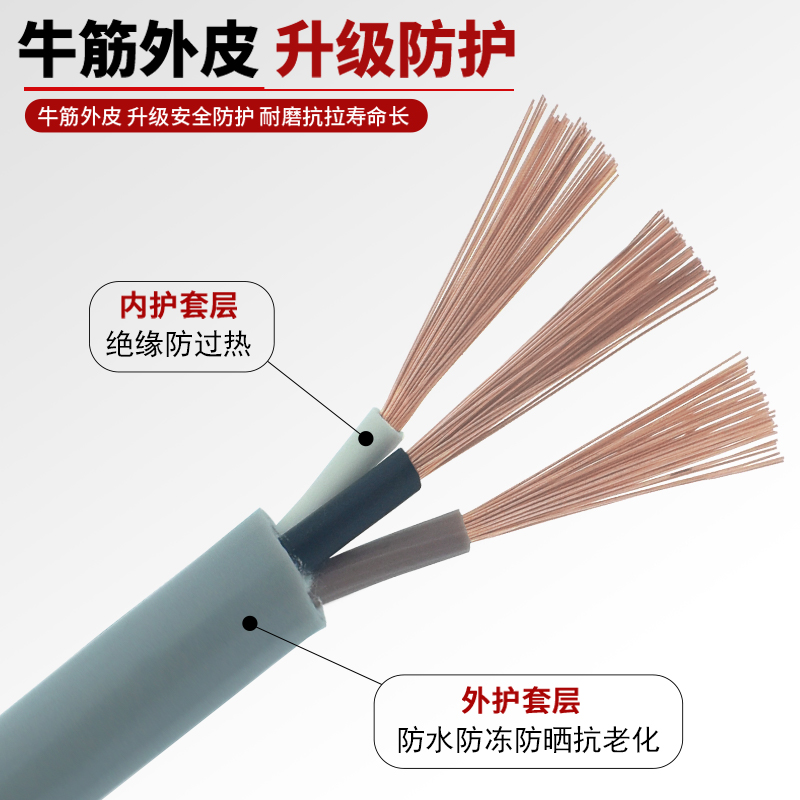 Pure Copper Cable Wire 2 Core 3 Core Jacket Wire 1 5 2 5 4 Squared Bull Gluten Waterproof Antifreeze Power Cord-Taobao