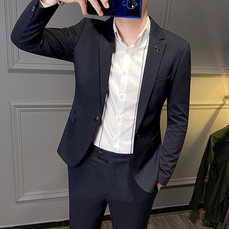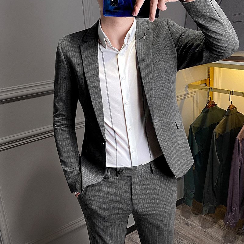 Rich Bird Men's Striped Suit Suit Casual Korean Version Handsome Slim Fit Business Dress British Trend Small Suit