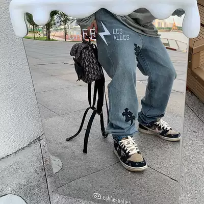 GAHKSTUDIO 2020 Autumn Favorites High Custom High Street Leather Cross Embroidered Jeans