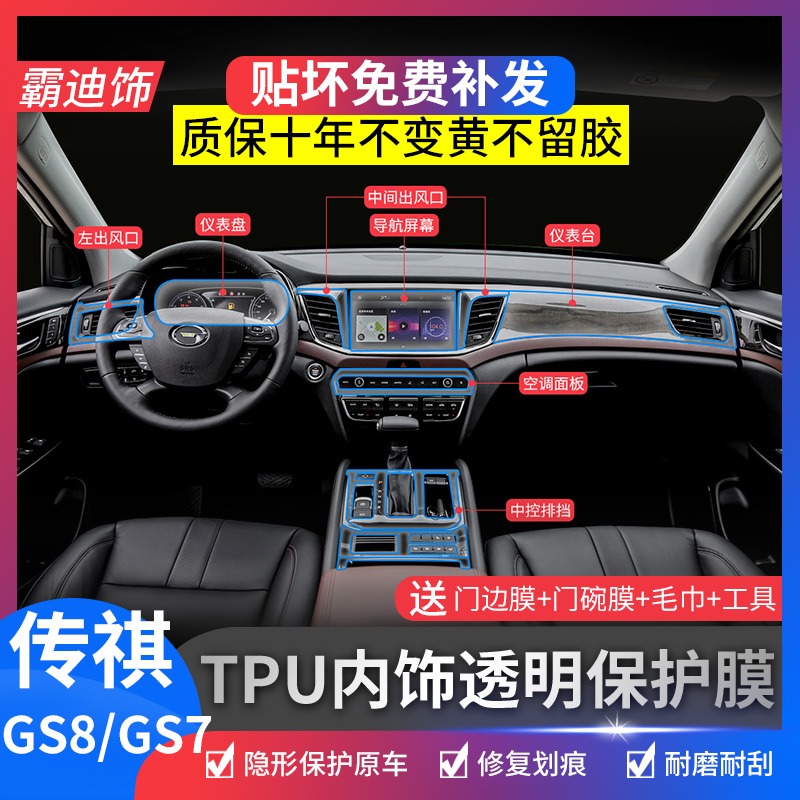 17-21 GAC Trumpchi GS8 GS7 interior protective film central control shift TPU transparent modified film decoration